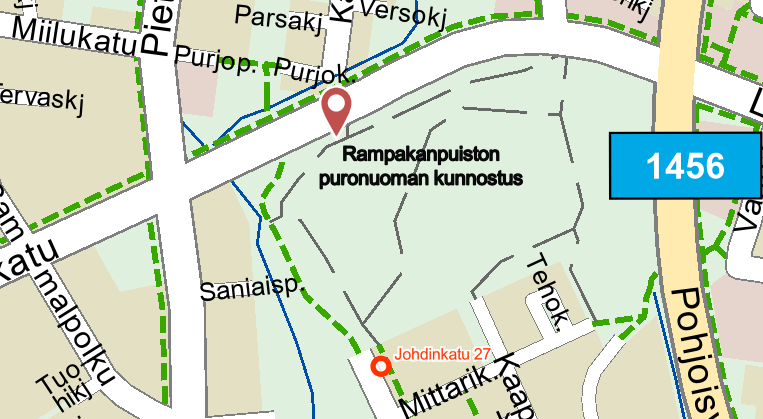 —Asuminen ja ympäristöSyyskuussa aloitetut Rampakanpuiston puronuoman kunnostustyöt jatkuvat viikolla 46. Työt kestävät arviolta noin kolme viikkoa (viikot 46–48).