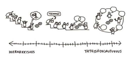 Yhteisöohjautuvan toiminnan myötä, kun päätöksentekokykyihimme luotetaan ja johtajuutta on jaettu, mahdollisuudet vaikuttaa omaan työhön lisääntyvät. Koemme työnimua ja meillä on voimavaroja työskennellä, emmekä pelkää epäonnistumista. Tämä ruokkii kokeilukulttuuria, oppimista ja onnistumisen kokemuksia, jotka ovat työmme tärkeitä elementtejä.